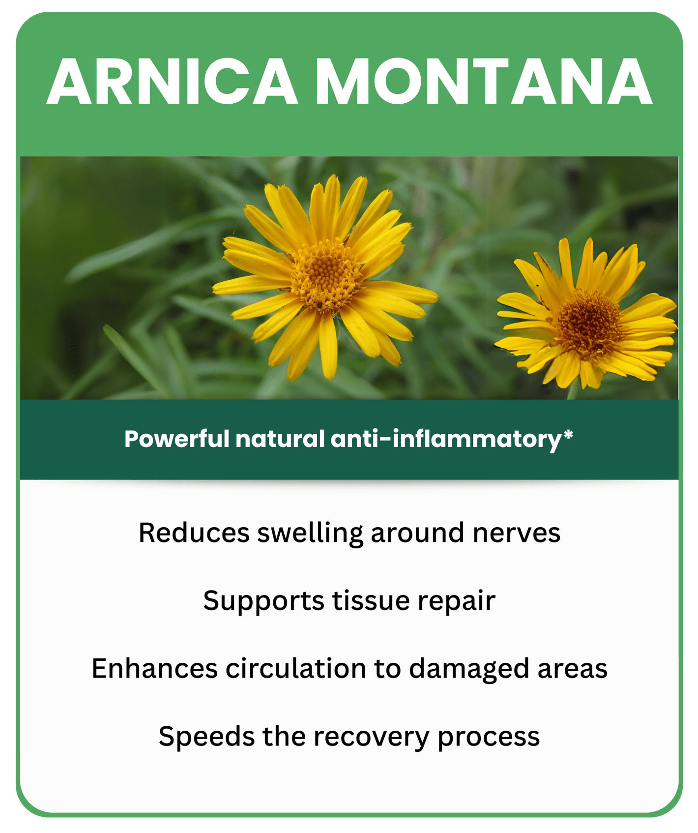 - Arnica Montana Extract to reduce inflammation and support tissue repair