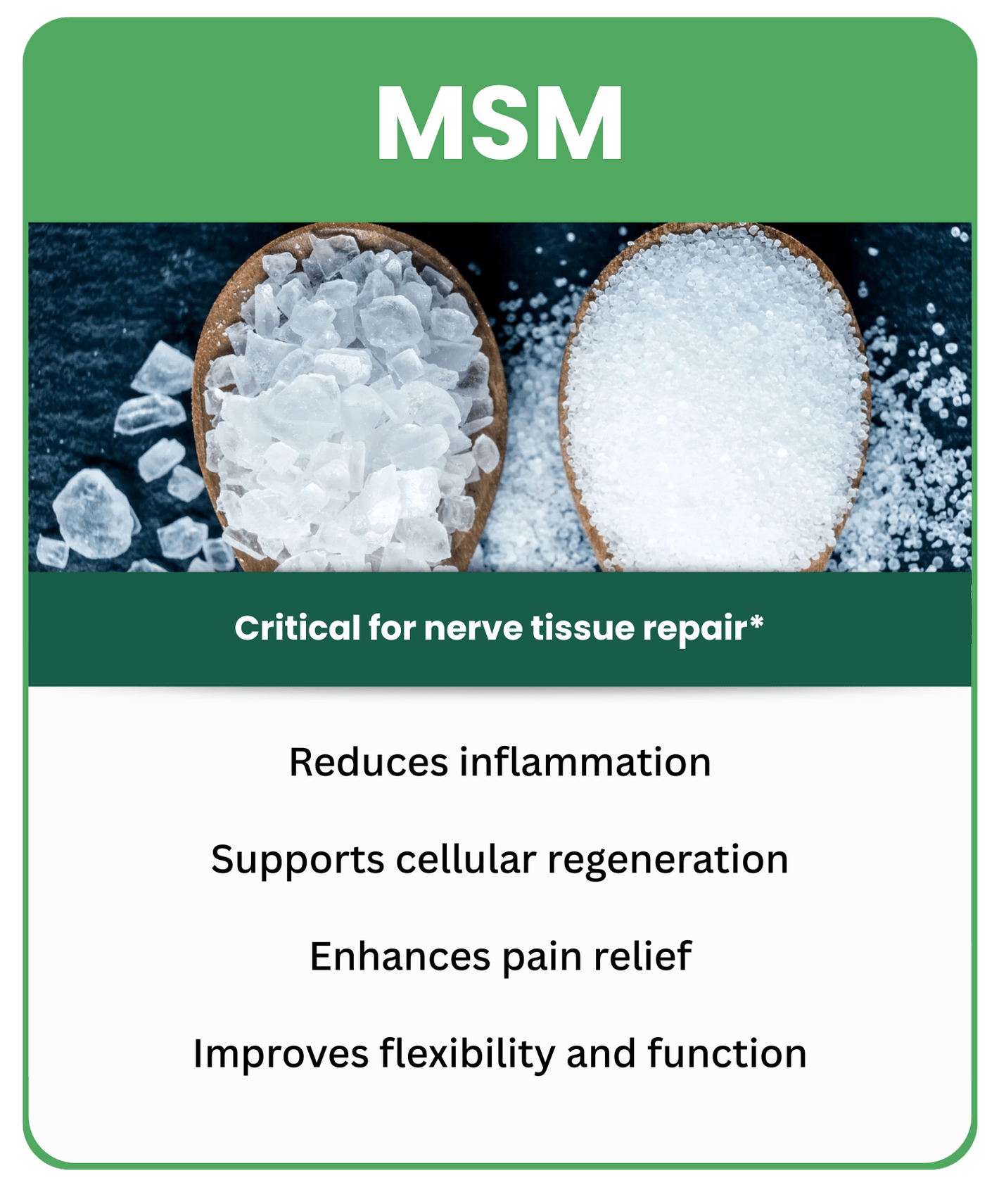 - MSM (Methylsulfonylmethane) to reduce inflammation and support nerve healing