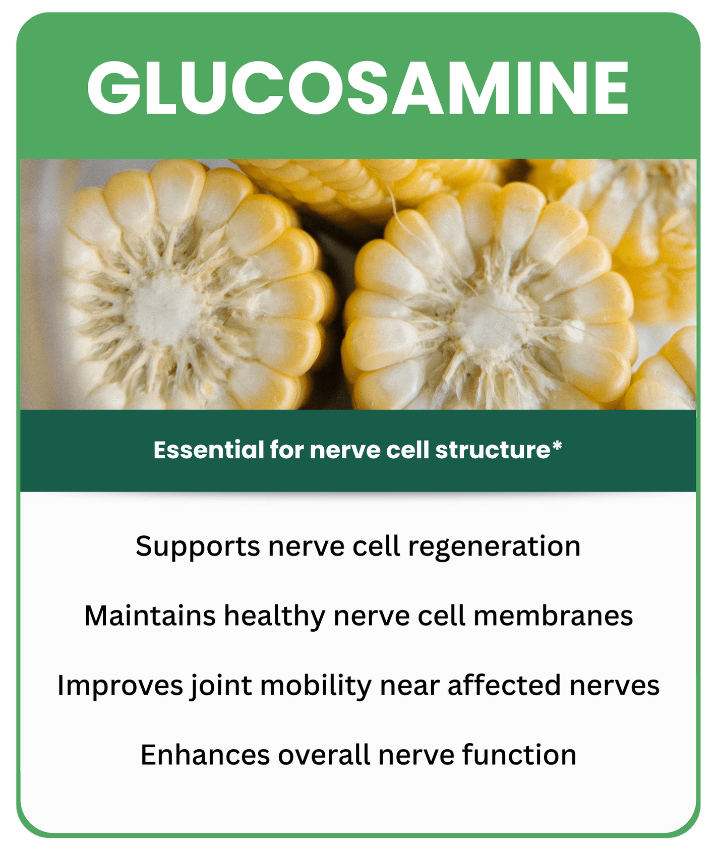 - Glucosamine to support tissue repair and nerve cell regeneration